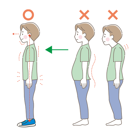 良い姿勢は腰痛、膝痛、ぎっくり腰、足裏痛などを