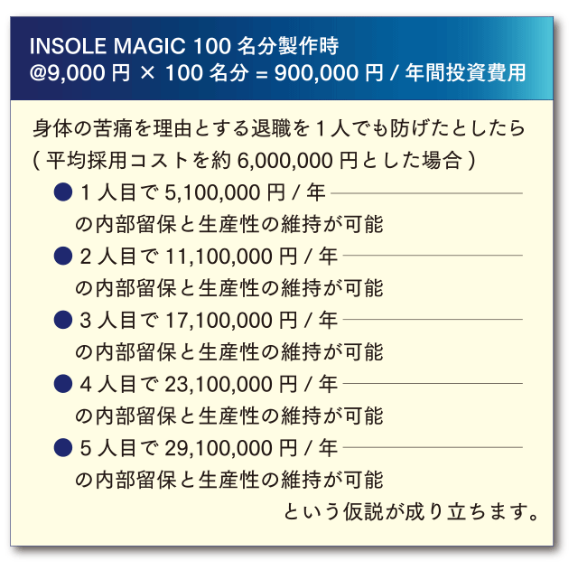 INSOLE MAGIC の採用をご検討いただくにあたり、御社スタッフ様による無料モニターテストが可能です。